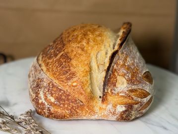 Crafted from premium organic, unbleached & unbromated flour & pure mineral-rich salt, naturally fermented in small batches — our signature sourdough is a celebration of simplicity done right. With a golden, crackling crust & a tender, complex crumb, each loaf reflects the care & time behind every rise. Made with just flour, water, & salt — it's a timeless kind of love: simple, honest, & always worth coming back to.