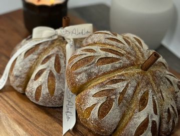 A seasonal sourdough made with real pumpkin, pure maple syrup, and organic spices, shaped like a pumpkin and baked to golden perfection. Beautiful enough to serve as a centerpiece, comforting enough to savor by the slice.